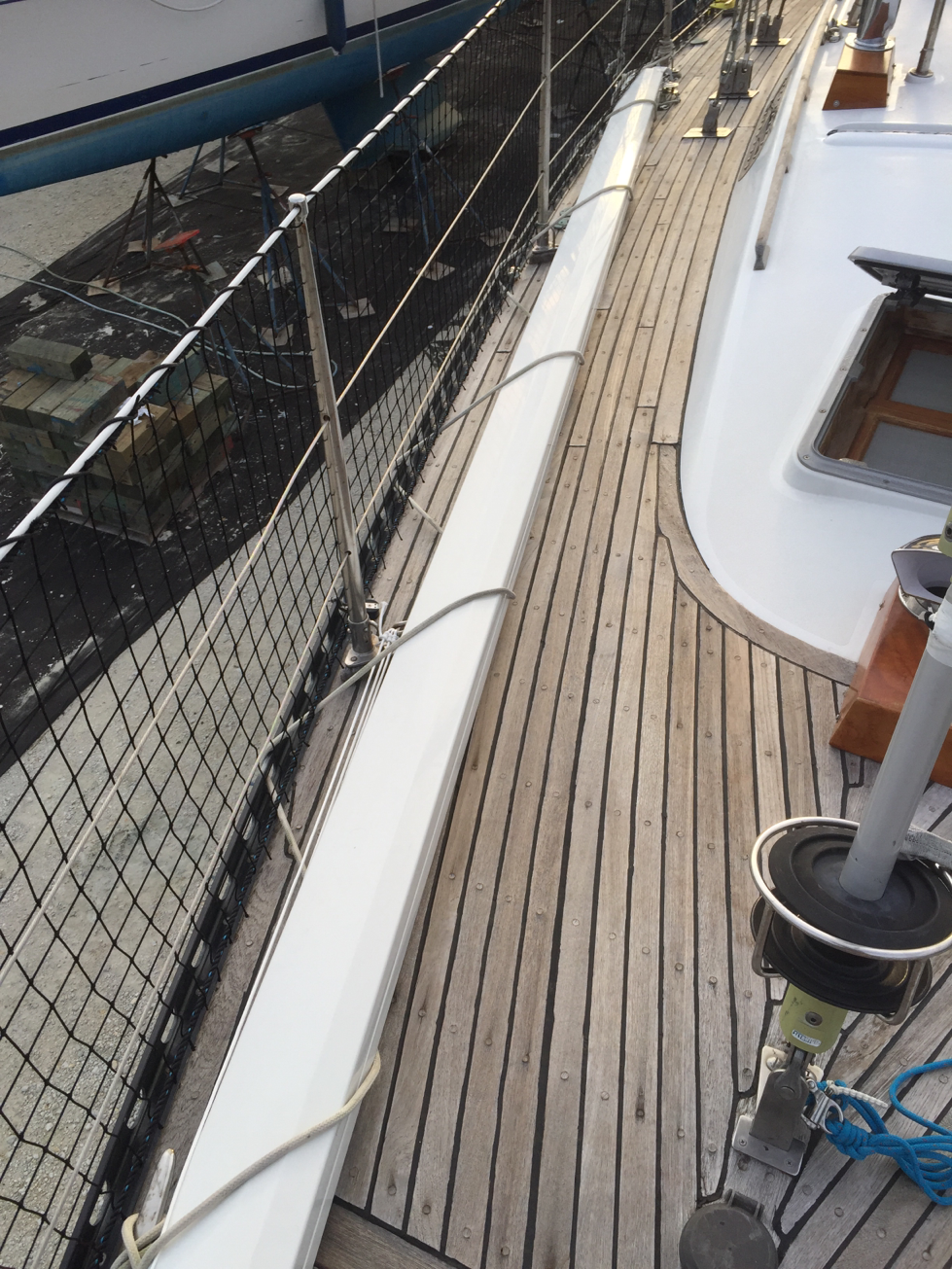 We're not actually moving onto Windbird right away. She's still on the hard, obviously, with the rig down and the chainplates being replaced, with some attendant cabinetry dust and general boatyard grime. Living without refrigeration, water or plumbing presents its own difficulties. But mostly it's the idea of hauling Piper up and down a 12 foot ladder that is dissuading us. Judy mentioned that she lived on the hard with a small pup once, hauling her up and down the ladder in a sack. We tested that idea out with Piper in Minnesota and...yeah, it didn't go well. So we found a dog-friendly VRBO in Isle of Palms for $490 a week, and will live there the first week at least. There really aren't that many things we need to get done before splashing Windbird, but I figure we should take full advantage of the time she's in the boatyard to get projects done that might be harder in the water - and being there every day will allow me to supervise the boatyard's work. Leigh Jones will be coming down from Myrtle Beach to help with the radome, masthead transducer, and thru-hull transducer installation, and I'll likely do the initial installation on the Garmin chartplotter. But once the boatyard work is done we'll be heading back up to Myrtle Beach so Leigh and Rico can replace the rest of the lightning-fried equipment, and Dawn and I can get the rest of the boat ready to head south to Florida and the Bahamas in January and February.